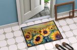 Home > Kansas Sunflowers in Watercolor Doormat Front Door Mat Indoor Outdoor Rugs for Entryway, Non Slip Washable Low Pile, 24H X 36W