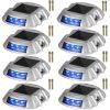 3.Super Bright LED Light: Light intensity: 400-500Lux. Each solar driveway light is equipped with 6 PCs 0.2" high-brightness blue LED lights, illuminating the space within a radius of 875 yards. Built-in 600mAH large storage battery ensures enough working time.